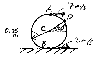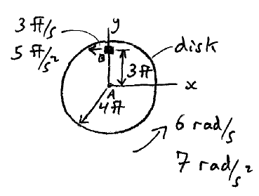 2. Determine the velocity and acceleration of point B on the wheel, at the instant shown.