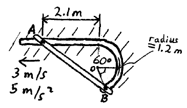 L = 5 ft, what is the velocity and acceleration of the rod tip B at the instant shown?