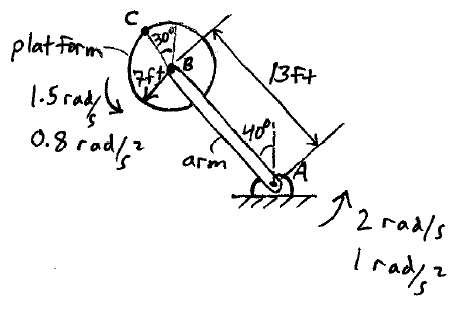 2, as shown. At the same instant, a rod AB that is connected to the disk, is rotating upward at a constant rate of d