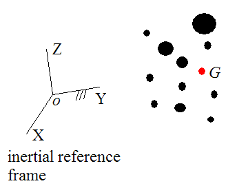 G of the system of particles, with respect to an inertial reference frame (ground).