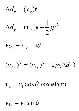 We are assuming no air resistance. So the particle travels exactly as it would while in a vacuum. Thus, we have the following equations describing the motion of a particle (projectile) in the absence of air resistance: