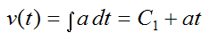 Integrate the above equation with respect to time, to obtain velocity. This gives us